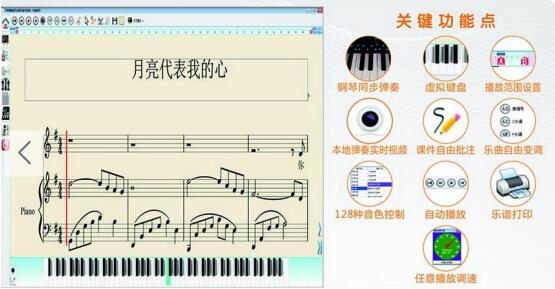 2.教材課件化、五線譜電子化,支持自動播放、一掉、多音色、AB 優播放、 調速、高低音分手播放等等。