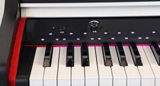 LED的作用是將老師的彈鍵位置轉換為燈的形式通過網絡同步到學生琴,從而 四線教學傳導,比如, 老師在自己琴上按中央 C,學生琴的中央 C 鍵 LED 就亮 起并發出生,是學生通過聲光效果快速學習;LED 指示燈支持紅藍雙色,點亮或 者閃爍的組合,可以實現師范教學,跟彈練習等不同教學方式。